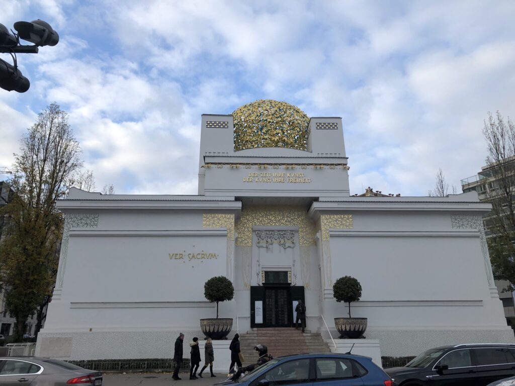 「金のキャベツ」と呼ばれているドームが有名でウィーンを代表する建物のひとつです。こちらの地下でクリムトが描いた壁画《ベートーヴェンフリーズ》を見ることができますが、残念ながら壁画は写真撮影禁止ですのでご注意ください。ポストカードなどは販売されています。